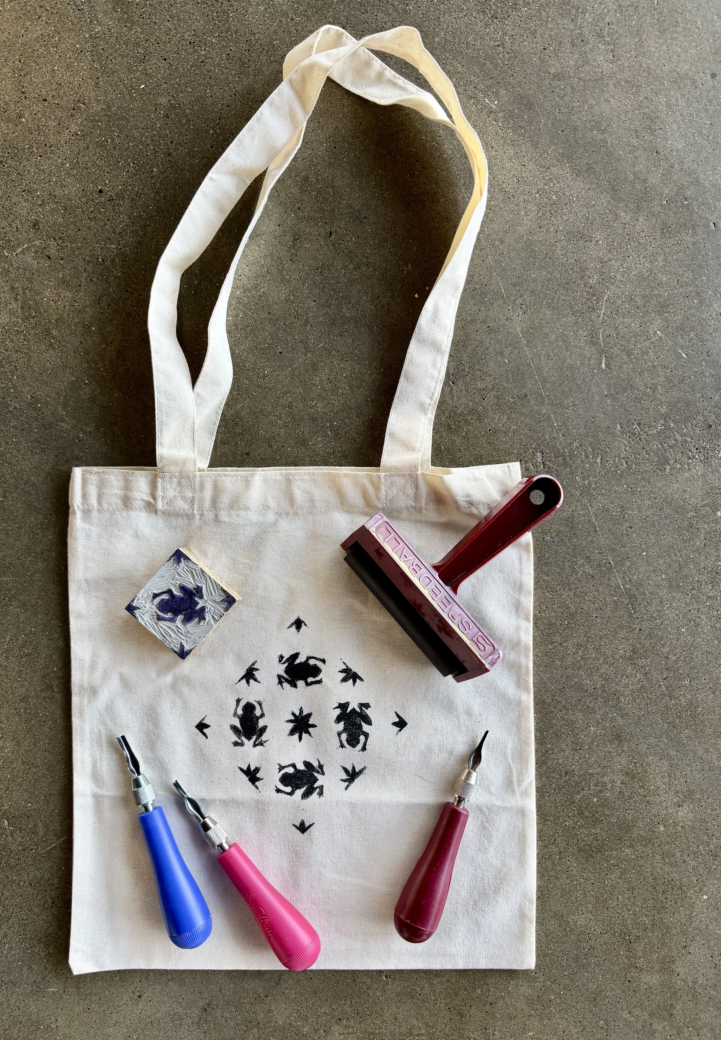 Explore the fundamentals of block printing on fabric in this workshop, covering the basics of designing, carving, and block printing on fabric. Students will have the opportunity to practice on paper and move to printing a design on a tote bag included in the provided materials.