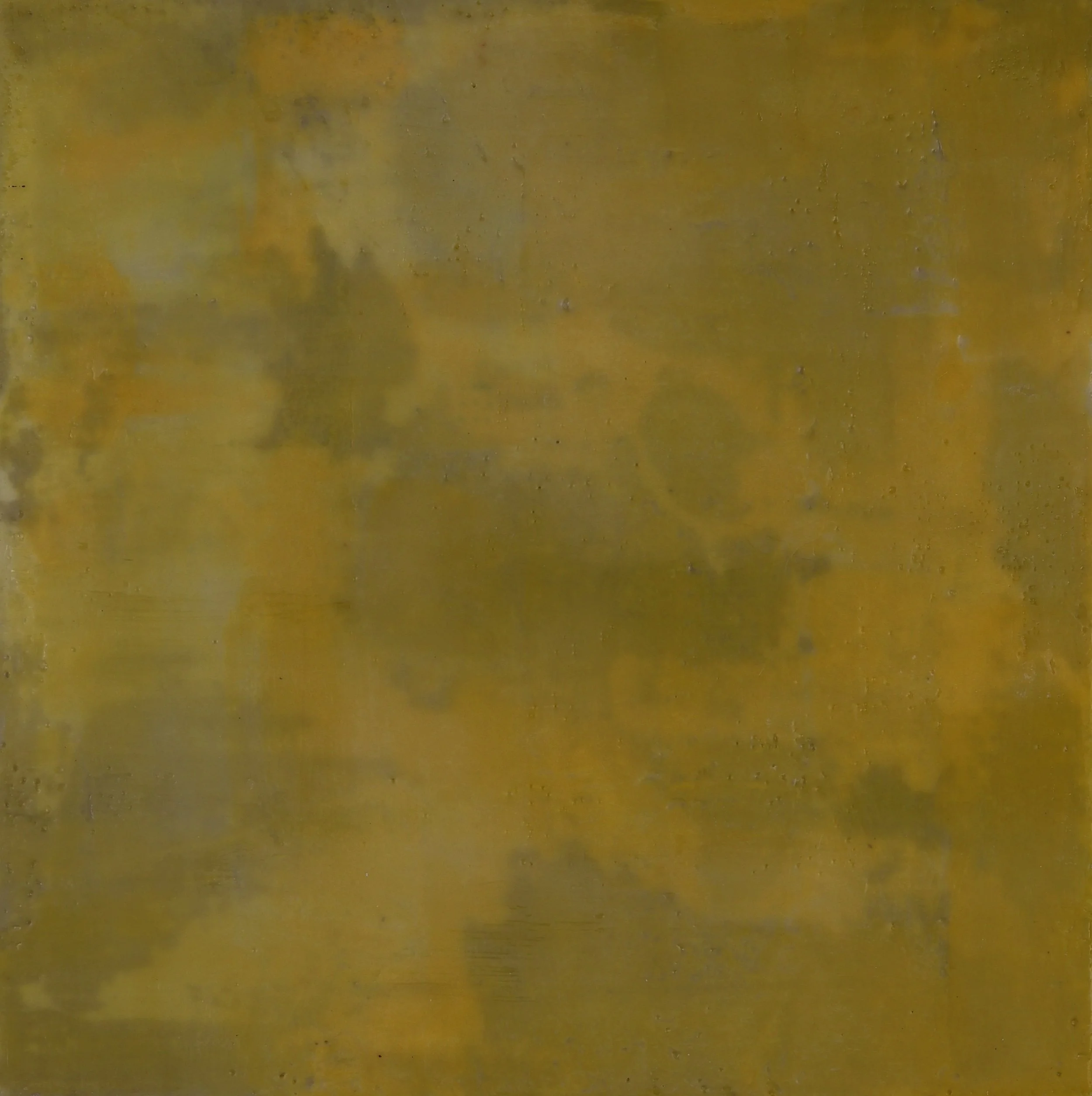Mille Guldbeck, "Yellow Meditation," oil and encaustic on MDF, 12 x 12 inches.