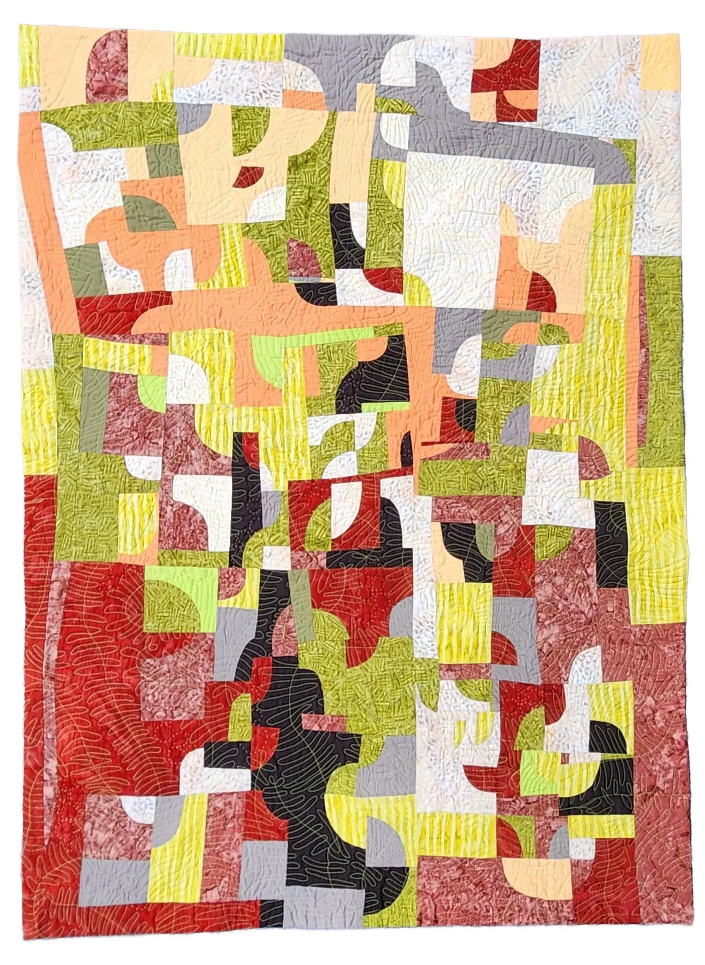 In this life-size print installation by Eliana Saari of Gahanna, OH, she aims to re-create that feeling of being surrounded by everyday people, unaware of their purpose. She has made multiples of her block prints to create an immersive experience. The life-size images of people walking or just standing, are suspended to allow them to move subtly and change with the play of light and shadow on their surfaces. This will allow the viewer to participate and to “lose” themselves in the crowd and at the same time, experience moments of beauty exemplified not only by the imagery itself, but by the silk, its movement and the play of light and shadow on it.