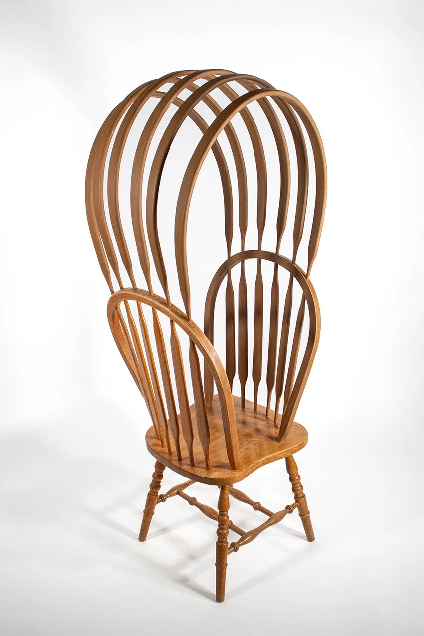 As a woodworker, using existing furniture pieces and parts rather than raw material is permission to slow down, use hand tools, and engage traditional techniques. I respect furniture craft tradition, but simultaneously challenge myself to work irreverently. My process often involves entirely dismantling a found chair, but I preserve its original history as I rebuild and transform. In the same instant I destroy the original object, I also honor and value it.