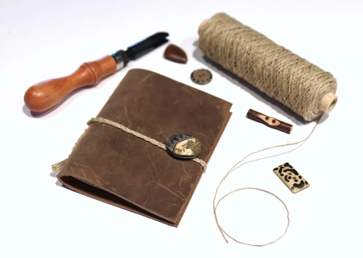 In this workshop you’ll learn how to make a pocket-sized leather-covered booklet using simple bookbinding techniques. This leather book is the perfect size for quick sketches, poetry, jotting down ideas or daily journalling.